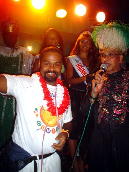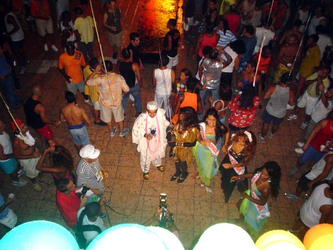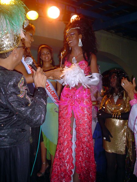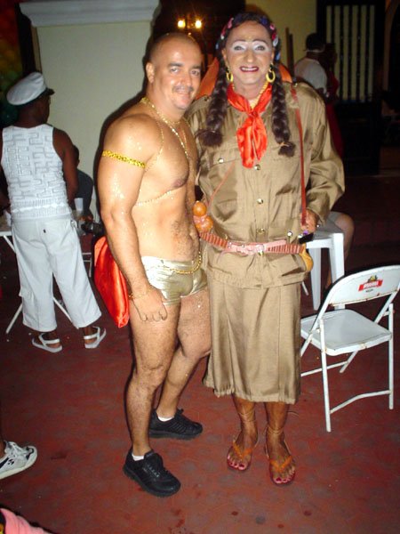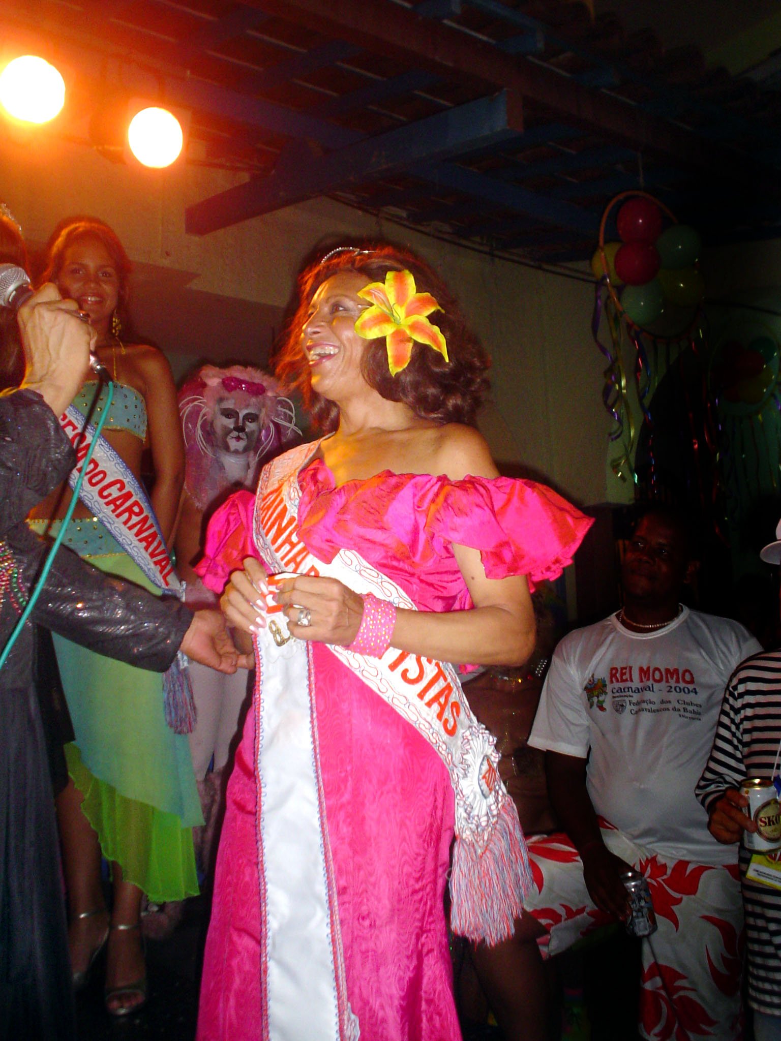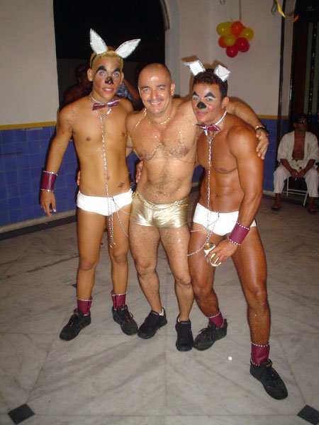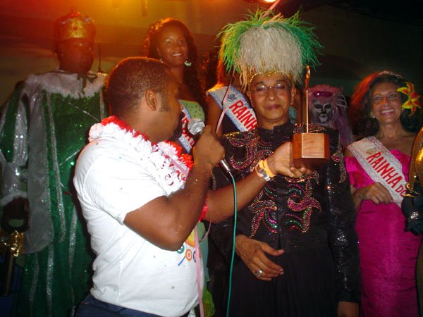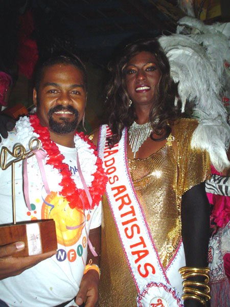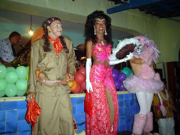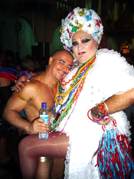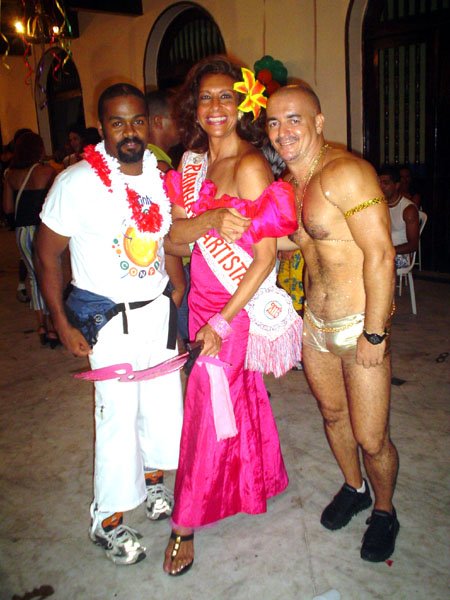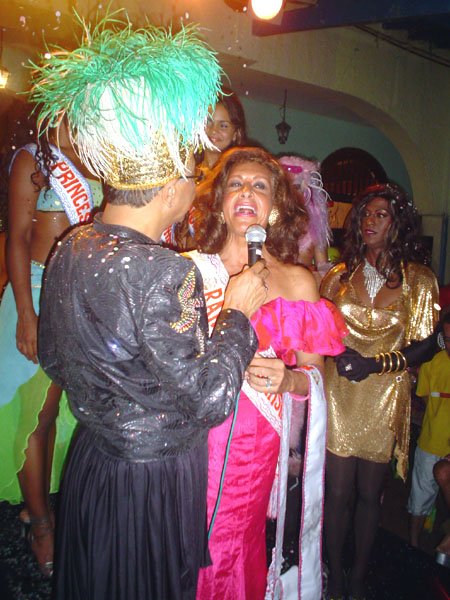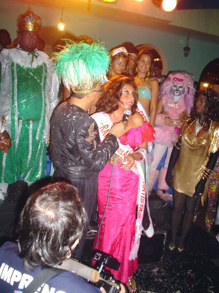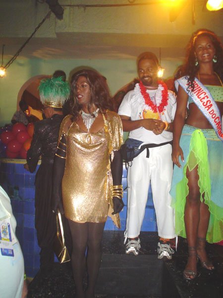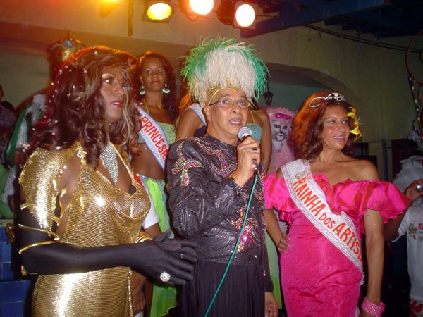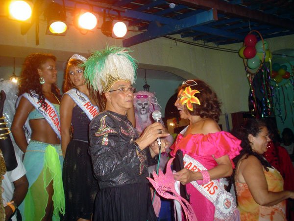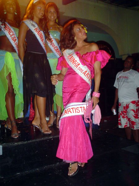 Neste espaço democrático encontramos nada mais nada menos que a estrela internacional “Divina Valéria” do Moulin Rouge de Paris, que foi a Rainha do Baile do ano passado e que este ano passou sua coroa à nossa fenomenal Bagagerie Spielberg a “Baga baiana” dona do slogan “Meus aplausos por favor que não tô morta”. Mais gente famosa? Claro, vi a nossa cigarra e sempre fantástica amiga dos gays Mirian Tereza, vozeirão pra ninguém botar defeito. fantochesmott015Também brilharam na festa do Fantoches as beldades, realmente mulheres: as princesas e a rainha do Carnaval de Salvador. Sem falar que sua majestade o Rei Momo 2004, Alexandro, peso pesado da folia fez bonito na passarela. Animação não faltou.