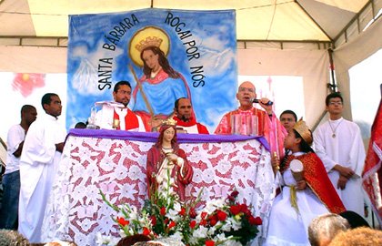 Em todo ritual da missa ao ritmo dos atabaques e dos agogôs havia os que, de braços ao alto, clamavam a Bárbara o desejo mais ansiado. A emoção foi tamanha que sob o sol de quase quarenta graus houve pelos devotos uma corrida geral as sombras dos casarios para não desmaiarem.
