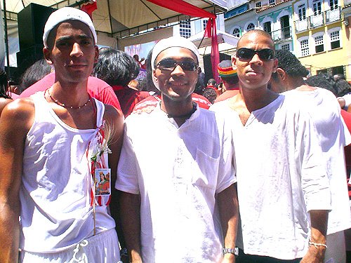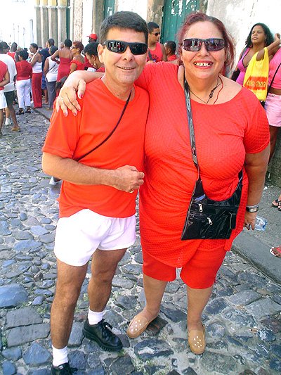 Gente que brilha e acontece não faltou. Bárbara atrai e ninguém quer ficar fora do seu laço protetor. O dono da Yes Club o empresário Dion “O Fabuloso” estava lá com um grupo de amigos. Tinha acabado de depositar suas flores no andor da santa. Estive com Ademário – todo de branco – da Sauna Esgrima no Terreiro de Jesus. E ouvi Ângelo, o mestre das letras que encarna a rechonchuda “Lilith” se queixar do calor. O professor Edvaldo Couto autor da pesquisa “Michês e Gringos no Porto da Barra” chegou a tempo de ver a procissão passar.