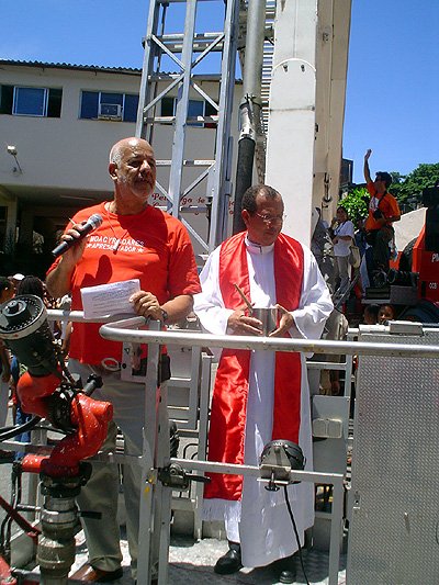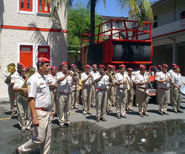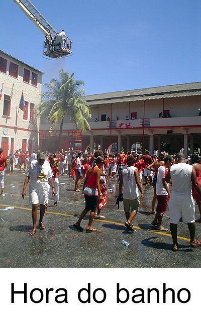 Um caruru é servido as centenas de pessoas presentes e nos fundos do quartel um altar a Bárbara é montado mas quem reina absoluta é Yansã . Aí sim ocorrem as manifestações “gente que recebe santo e cai” mas sempre tem por perto um baba ou yalorixá para dar ao orixá a homenagem ou a assistência espiritual devida. E haja banho. Quem não quer se molhar tem que correr pois é atirada água em todo mundo. Pra refrescar o calor é babado estas mangueiras dos bombeiros.