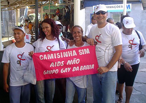 Já na Estação de transbordo da Lapa a vez foi do GGB – Grupo Gay da Bahia dizer um grande “Não” a AIDS. Duvido que alguém não saiba que o GGB na Bahia, foi a entidade pioneira na luta contra esta epidemia que nos primeiros anos da década de 80 chegou a ser considerada “Peste Gay” ou “Câncer Cor-de-rosa”. Estigma cruel pelo fato da então desconhecida doença ceifar muitas vidas homossexuais. Houve hoje pelo GGB em comemoração ao Dia Mundial de Combate a AIDS, uma farta distribuição de preservativos, de folhetos e postais informativos aos usuários desta hiper movimentada estação de ônibus.
