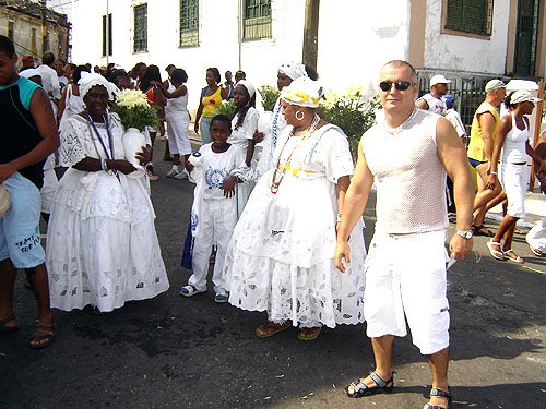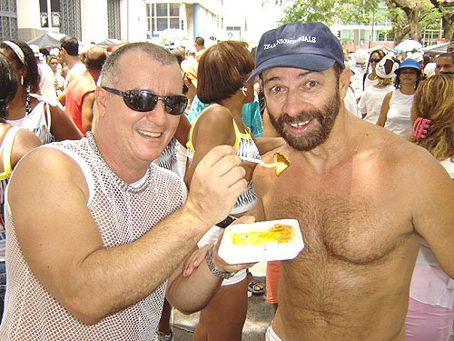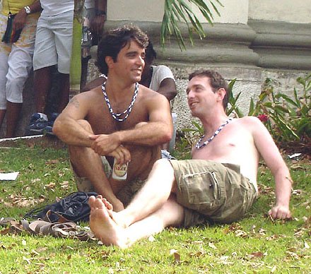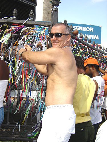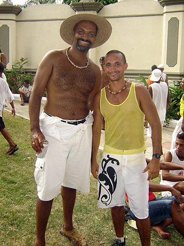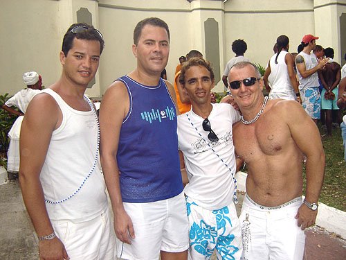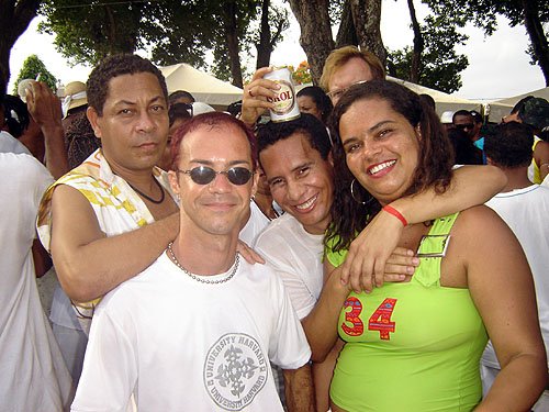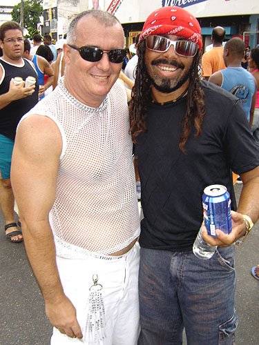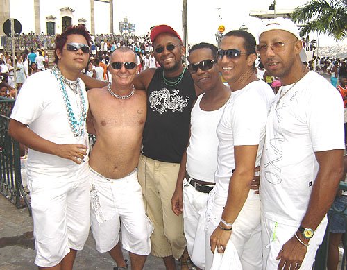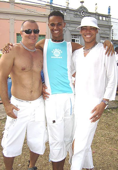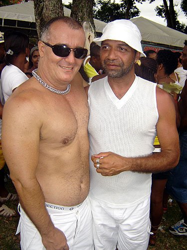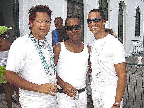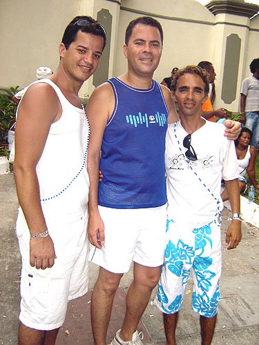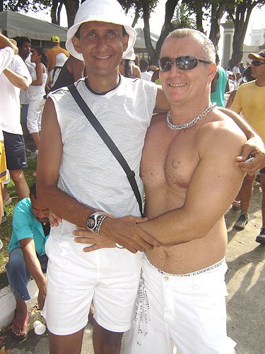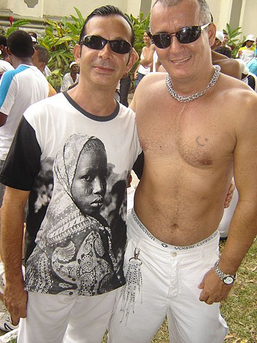 Já falando na gente que acontece nesta espécie de evento, encontrei Davi Aranha, o nosso “arroz de festa de festas GLS” com um grupo animadinhos sabe onde? Num ponto histórico a poucos metros da Basílica do Bonfim, numa das Casas dos Romeiros – hoje transformadas em residências e fazendo a maior auê. Lá estavam os vips da moda e das artes. E antes de falar no point do fundo do Hospital Sagrada Família – maior concentração Gay por metro quadrado da Colina Santa – registro que na Praça Conde dos Arcos no Comércio e em frente ao INSS, já pelo terceiro ano consecutivo a galera monta um esquema super divertido – aberto, grátis e com música ao vivo e o “ficar” é lei. O detalhe curioso é que os “quarentões” do tipo nórdicos predominam. Mas voltando ao reduto Gay da Sagrada Família no Bonfim – o cenário natural mais antenado daquelas bandas – os tipos mais diversos marcaram presença. Desde intelectuais, promoters, artistas, travestis, turistas, pais de santo, gatinhos se descobrindo gays e casais de lésbicas, todos e todas eram de uma alegria contagiante.
