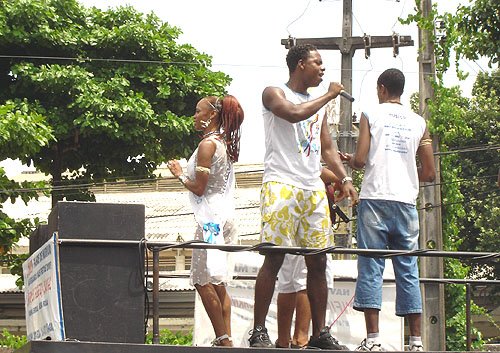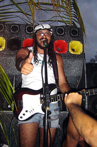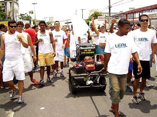 Um fato curioso que aconteceu na Lavagem este ano foi uma profusão de “Bell Marques”. Nunca vi tantos covers do vocalista da Banda Chiclete juntos. Em cada esquina ou numa charanga qualquer, lá tinha um Bell agitando a galera. Os sósias faziam sucesso. Alguns muito parecidos e que chegavam a confundir os incautos. Bom, “quem não tem cão vai com gato mesmo”. O que deve ser um prazer enorme pro Bell verdadeiro, ter tantos fãs que lhe dedicam este carinho. Eu adoro o Bell e pra mim posar com um deles já foi uma satisfação pessoal muito grande. Só não pedi o autógrafo, porque aí seria demais né?