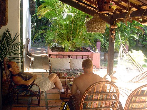 Não sei me desvencilhar da arte. E a minha casa teria que ter, sem a mínima dúvida, o lugar reservado a que se sintam bem meus hóspedes e a comunidade que a cerca. Também a Ruth Escobar, esta grande mulher do teatro brasileiro, cavou comigo, literalmente o chão de onde seria o nosso primeiro anfiteatro que leva o seu nome. Já estiveram conosco, só para se ter uma idéia, pois nem mesmo recordo de todos, o Grupo Tran-Chan da UFBA que veio inaugurar o anfiteatro Ruth Escobar com uma apresentação chamada “ Overdose, Overgose e OverGOD” – a dança de alto nível da Leda Muhana, Bete Grebler e Giovani Luchinni. No palco do espaço cultural Manga Rosa, veio o negro gato Luis Melodia, o vozeirão do Lazzo Matumbi, Tuca Lago, o saxofonista Paulinho Andrade, Caetano Veloso, Grupo Garagem, Moa Ambessa – Reggae, Paulo Moura, Lenny Andrade, o ator Chico Dias, as apresentadoras de TV Kátia Guzzo e Luzia Santana, Aline Menezes, Nana Caymmi, Gereba, O Grupo Avelãs e Avestruz do Márcio Meirelles, o repentista Bule-Bule, Luizinho Assis, Petinha Barreto, Lula Kotler, Paulinho Andrade, Val Macambira, Edil Pacheco, Lia Chaves, Marcia Short, José Daniel, Elba Ramalho, Luis Caldas, Sidney Magal, Armandinho, Morais Moreira, e na abertura do verão passado tivemos um super show – para 430 convidados – com a madrinha da parada gay, a estonteante cantora feirense Simone Sampaio. Intelectuais como o etnólogo e fotógrafo Pierre Verger sempre nos visitou com assiduidade. O ministro de Cultura da França Jack Lang, o pintor Caribé, o grande Bel Borba e a pesquisadora Arlete Soares, Rina Angulo, Antônio Risério, Marcia Ganen, o ministro Jaques Wagner, e por Aninha Franco, a nossa diva da dramaturgia baiana, fui pesquisado pelo meu passado hippie da década de setenta, para o seu trabalho “Vapor Barato” que veio a fazer muito sucesso. E tem mais gente e mais acontecimentos, é que a mente da gente nos prega peças e quando mais precisamos recordar não conseguimos…