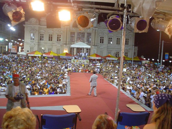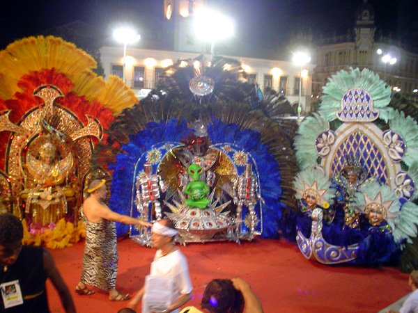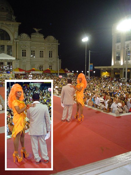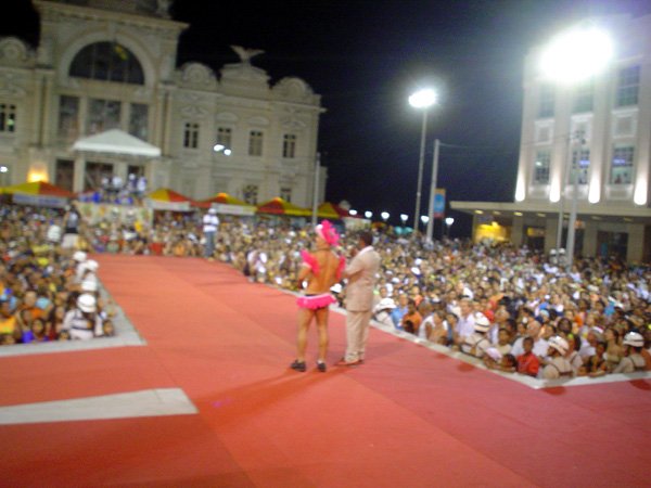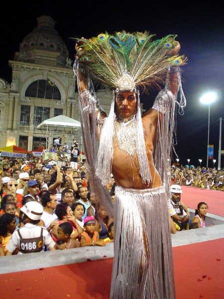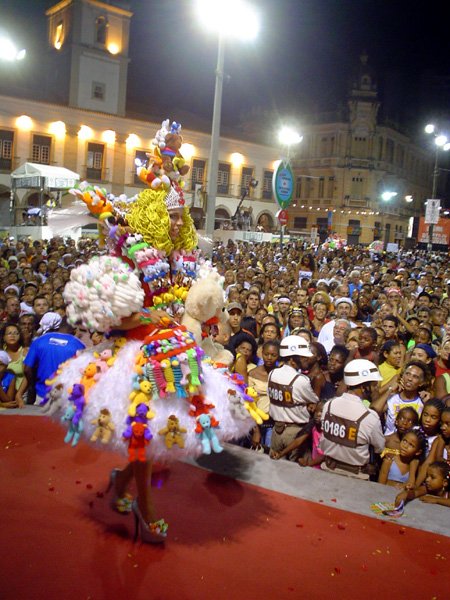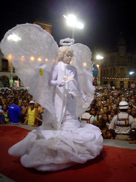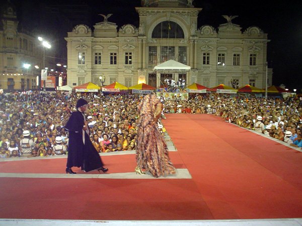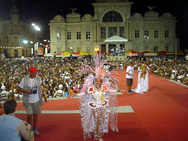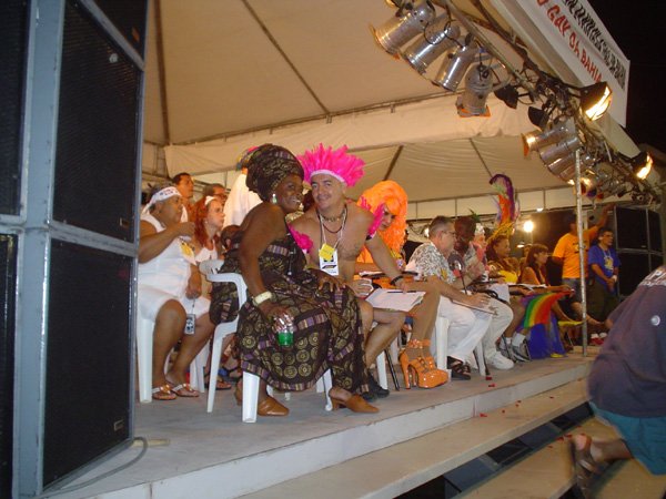 Luzes, música, plumas – muitas, em algumas fantasias havia mais cinco mil plumas de pavão e avestruz – e alegria. Foi assim o 7º- Festival Nacional de Fantasia Gay, realizado na segunda-feira, no início da noite, na Praça Municipal. O espaço entre o Elevador Lacerda, o Palácio do Rio Branco, a prefeitura e a Câmara Municipal foi pequeno para a multidão que vibrou com as performances de drag-queens e dos “desfilantes” profissionais. Mais uma vez, Pernambuco deu as cartas, com um maior número de vencedores.“Eles têm mais tradição em desfiles dessa natureza”, disse o antropólogo Luiz Mott, fundador do Grupo Gay da Bahia (GGB).