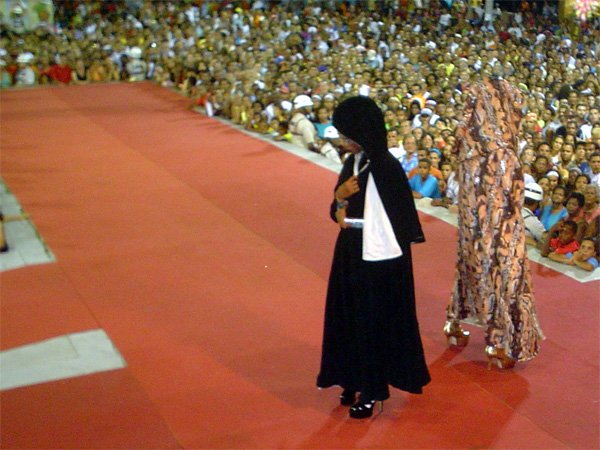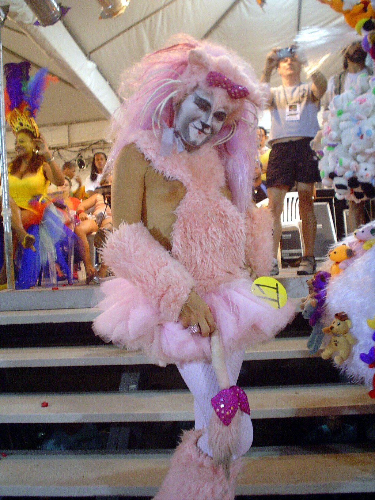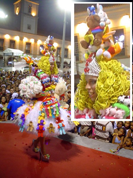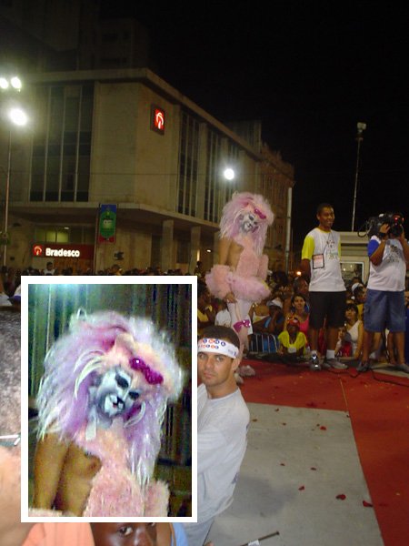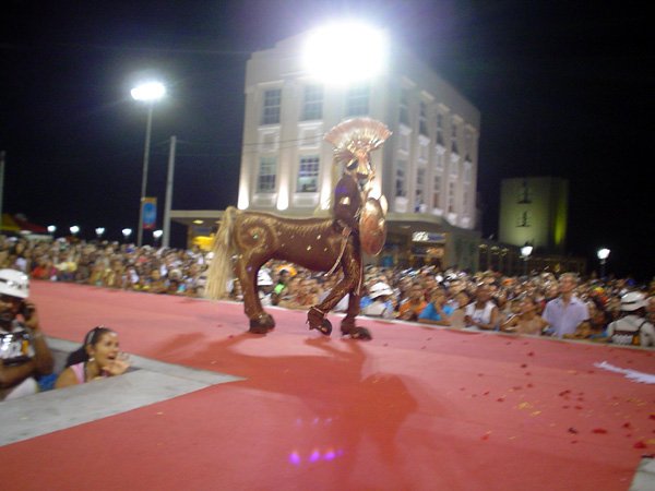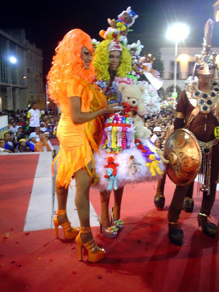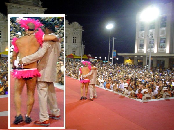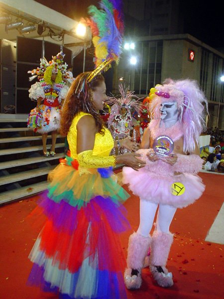 O terceiro colocado foi Luiz Carlos Barreto, 55 anos, também da capital pernambucana. Ele conquistou os R$ 2 mil de prêmio com a fantasia Joana D’Arc. BICHO DE PELÚCIA – Na categoria originalidade, o baiano de Feira de Santana Duda Weshlley, de 24 anos, foi o campeão, com a fantasia Bicho de Pelúcia. Prêmio de R$ 4 mil. Em segundo lugar, o pernambucano Romero Luiz, 62 anos, desfilando de Centauro e faturando R$ 3 mil. O terceiro colocado foi o baiano Sandro Costa, com a fantasia A Gatinha. Prêmio de R$ 2 mil. Policiais que fizeram a segurança em volta da passarela de 18 metros de comprimento (à frente das escadarias da prefeitura) estimaram em mais de cinco mil pessoas o público que compareceu ao desfile. Sem nenhuma demonstração homofóbica, as pessoas queriam mesmo era curtir o show das “meninas”, como eram graciosamente chamadas as estrelas do desfile.