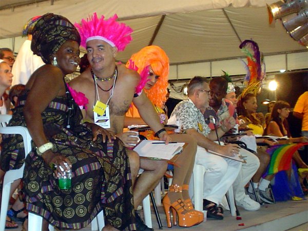 Responsável pela produção do desfile, o presidente do GGB, Marcelo Cerqueira, destacou o ambiente de respeito que uniu heteros e homossexuais sob a bandeira das cores do arco-íris do GGB. Luiz Mott, entusiasmado com o clima de alegria, anunciou ao microfone no melhor estilo de quem narra um gol: “A Bahia é gay”. BAGAGERIE – Depois de desempenhar o papel de mestre-de-cerimônias, Marcelo Cerqueira passou o microfonepara a drag-queen Bagagerie Spielberg. O espetáculo estava completo.